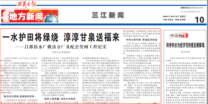 昌都鎮水廠俄洛分廠及配套管網工程從建設伊始,向民心、民意、民生靠攏,更著手長遠,找尋地區經濟發展的新路子、新方式,力求實現人文關懷與經濟脈絡互利互贏。