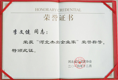 近日,由河北省企業(yè)家協(xié)會傳來消息,中太建設(shè)集團名譽董事長李文健榮獲“河北杰出企業(yè)家”榮譽稱號。