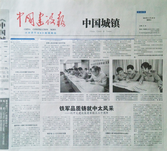 中國建設報報道了鐵軍品質鑄就中太風采——記中太建設集團軍轉工三十周年