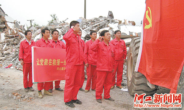 ■2008年汶川地震搶險救災(zāi)現(xiàn)場舉行入黨儀式