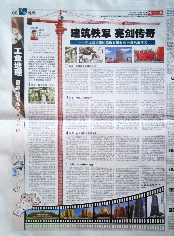 “人馬未歇的中太扛著‘打中太牌、走全國路、謀海外財’的軍旗,一路高歌猛進,全力征戰(zhàn)國內(nèi)外建筑市場。無論是平沙莽莽黃入天的新疆戈壁,風(fēng)吹草低見牛羊的內(nèi)蒙草原,還是吳儂軟語的江南水鄉(xiāng),群雄逐鹿的人文中原,抑或北非地中海沿岸等地到處都活躍著中太人的身影。”中太總裁張明禮娓娓道來。