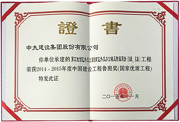 近日,中國建筑業協會公布了2014-2015年度中國建筑工程評比結果,中太建設集團承建的北京“第三使館區外交公寓B南區外交辦公樓及附屬用房(D座、E座)”工程項目榮獲中國建筑工程最高榮譽獎--魯班獎。