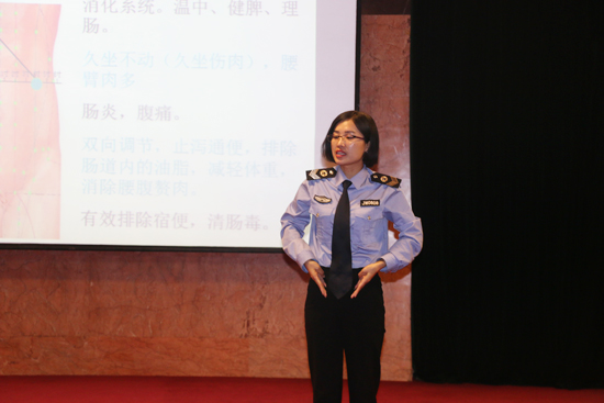 在中國環(huán)境健康與衛(wèi)生安全促進會河北分會的大力支持下,中國安全健康教育中心河北站特邀講師、省健康教育專業(yè)委員會委員、宣教科科長孫京苗走進中太大廈,圍繞現(xiàn)場緊急救護知識、空氣污染的危害以及健康防護、經(jīng)絡穴位養(yǎng)生知識、職業(yè)病的防治等內(nèi)容,從實際案例出發(fā),深入淺出、形象生動的剖析健康的重要性以及相關健康危險源的防治方法,同時還邀請現(xiàn)場員工代表上臺,與老師合作為現(xiàn)場員工形象的解析了物理治療的原理。孫京苗老師的精彩授課得到了在場員工的一致認可。