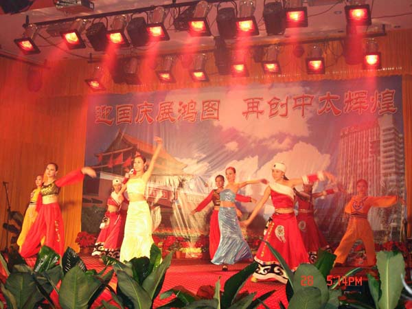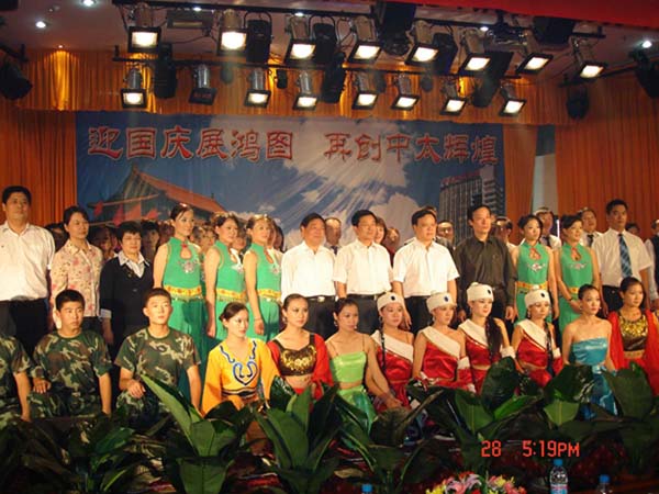 9月28日下午,中太建設集團在二樓報告廳召開迎國慶暨“中太十年”慶典大會。中太建設集團總部、各事業部機關全體人員及下屬各單位中層以上領導、部分管理人員及員工代表共300余人參加慶典大會。市總工會、國資委、市建設局、市文化局有關領導出席慶典大會。中太建設集團董事局主席、總裁李文健發表“高舉發展旗、再創新輝煌”的講話。與會人員懷著喜悅的心情觀看了中太員工自編、自導、自演的精彩文藝節目。會場一片節日氣氛,輕歌漫舞喜慶國慶58周年,嘔歌中太十年的奮斗業績,憧憬更加輝煌燦爛的美好明天。