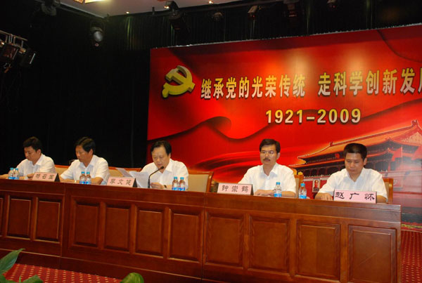 黨委副書記鐘崇鶴宣讀了2008年度“一先三優”表彰決定。然后,李文健、鐘崇鶴、楊召國、趙廣懷、梅興元分別為受表彰單位和個人頒獎。李春陽等6名新黨員面對黨旗,舉行了新黨員入黨宣誓。總部、各集團(板塊)機關全體黨員及所屬各黨支部班子成員、部分黨員、管理人員200多人參加了表彰大會。會議采取以演唱歌頌黨的革命歌曲為主要內容、邊頒獎邊演出文藝節目的形式,將大會推向了一個高潮,受到了大家的歡迎和贊揚。