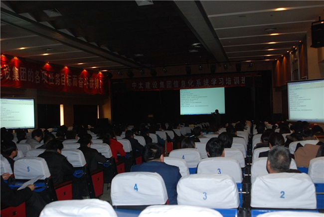 41,集團(tuán)公司在中太大廈二樓報(bào)告廳舉辦為期兩天的施工總承包企業(yè)特級(jí)資質(zhì)信息化培訓(xùn)班。公司副總裁劉啟友做開(kāi)班動(dòng)員講話(huà)。副總裁楊剛、張國(guó)棟主持。總裁辦公室網(wǎng)絡(luò)管理員王永安授課。