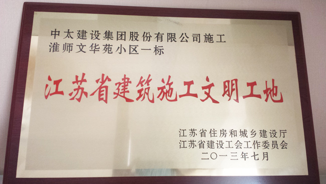 近日,由第三工程局承建的江蘇省淮安市淮師文化苑小區一標,被江蘇省住房和城鄉建設廳、江蘇省建設工會工作委員會評為二零一三年“江蘇省建筑施工文明工地”。