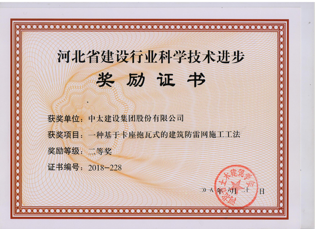 2018年河北省建設行業科學技術進步獎勵證書匯總
