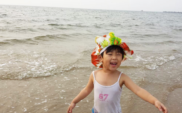 拍了照片后,突然讓我感覺(jué)像文清同學(xué)媽媽去澳門時(shí)住在海景房拍的海景照片! 看完海景就開(kāi)始了匆忙的換泳衣準(zhǔn)備下海,海景公寓的好處就是出來(lái)小區(qū)走上自己的棧道就是小區(qū)的私家海灘,非常干凈。近距離的接觸大海,吹著涼爽的風(fēng)(天氣多云,溫度在29度),讓我們一行幾個(gè)馬上開(kāi)懷起來(lái),每個(gè)人的興奮在臉上流露。孩子是最興奮的,跑到海邊上,任憑海浪一層層的打過(guò)來(lái)(這天風(fēng)并不大),孩子說(shuō):“媽媽,你看大海碰我了!”竟然用起了擬人句,把大海打過(guò)來(lái)的浪花比作在“碰”,這字用的多么美妙啊!我一邊欣賞著美景一遍在咂摸著這話,贊嘆著孩子的天真和用詞之妙。我們真的跳入大海浸泡的時(shí)候,舅舅在照顧著她,突然一個(gè)浪打在了孩子的頭上,孩子嚷著:“我要離開(kāi)大海了”,這是在身邊的舅舅轉(zhuǎn)告我的,我在想孩子真是長(zhǎng)大了,會(huì)表達(dá)很多個(gè)人的感情了,“啊,我要離開(kāi)大海了”是一個(gè)陳述句,但是好像是表達(dá)著一種不舍得離開(kāi)但是有不得已的感情,她很想在大海里再待一會(huì),但是因?yàn)樗焕嘶ù驖窳祟^發(fā),依她個(gè)人的膽量可能害怕了,所以說(shuō)了句“啊,我要離開(kāi)大海了”,孩子的成長(zhǎng)讓我們自覺(jué)不自覺(jué)真切感受到了。然后她自己在海灘玩沙子,挖了大大的沙坑,每當(dāng)海浪沖過(guò)來(lái)的時(shí)候,總是興奮的說(shuō):“媽媽大海幫我大忙了,還給其他家人也興奮的嚷嚷,大海可是幫了大忙了”。當(dāng)我問(wèn)她到底幫了什么忙時(shí),她說(shuō):“大海給我的沙坑送來(lái)了水啊”(估計(jì)是她不用拿著自己的小碗去海邊舀水了)。我感嘆著女兒的天真浪漫和快樂(lè)興奮,內(nèi)心在想:帶著孩子出來(lái)玩玩是多么對(duì)的選擇,大自然的風(fēng)光的確是能刺激人的靈感,說(shuō)了那么多令我平時(shí)聽(tīng)不到的妙字妙語(yǔ)。這趟短途旅行意義非凡!