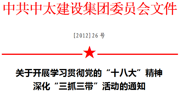 為深入學習貫徹落實黨的“十八大”會議精神,樹立“嚴、細、精、實”的工作作風,努力打造政治堅定、業務精良、求真務實、作風過硬的領導班子和黨員隊伍,打造中太黨組織品牌,根據集團二次黨代會目標要求,集團黨委決定在全集團開展以“抓好班子、帶好隊伍,抓好支部、帶好黨員,抓好黨員、帶好群眾”為主要內容的“三抓三帶”活動。現將活動實施有關事宜通知如下:
